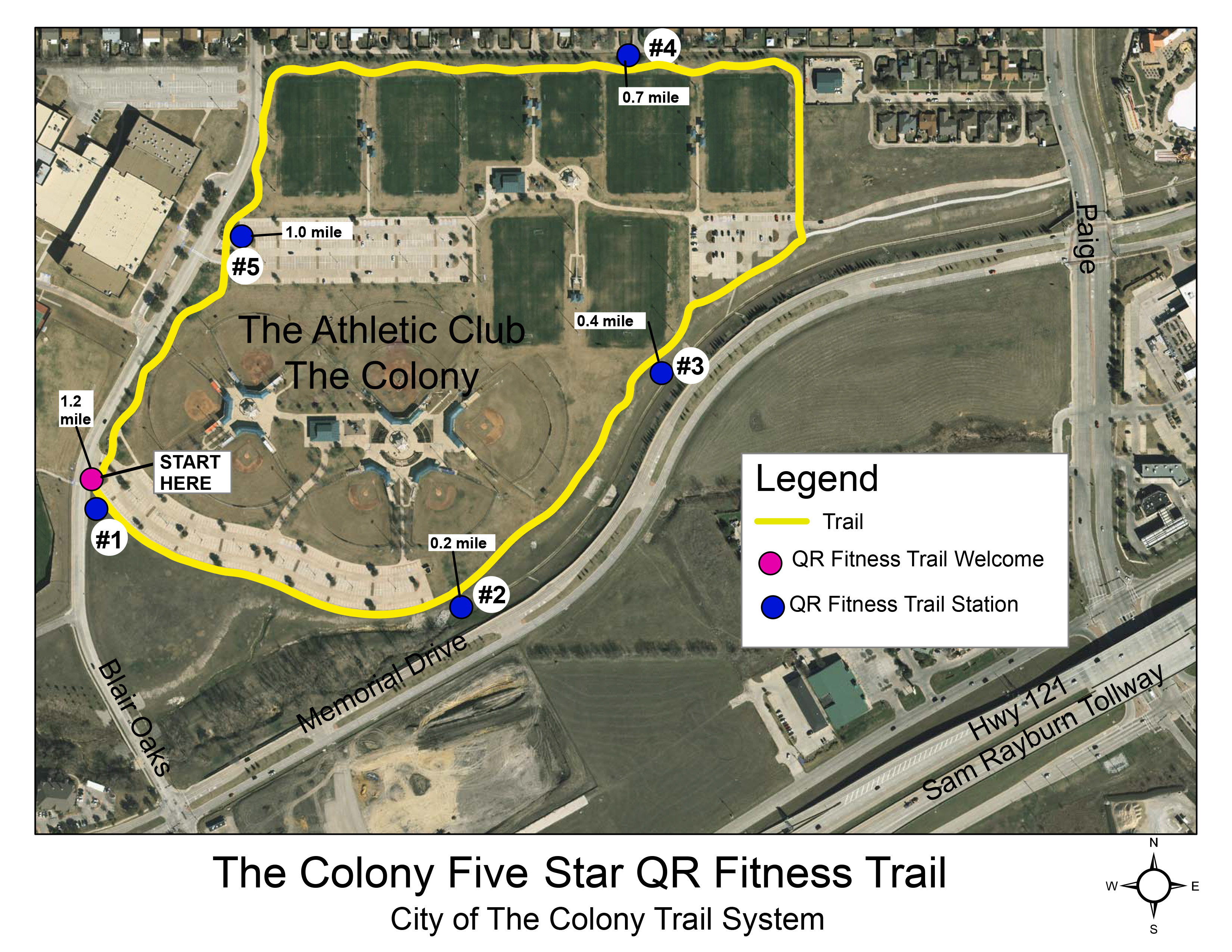 Circling The Athletic Club - The Colony, the Veterans Memorial Trail (formerly The Colony Five Star Fitness Trail) is a 1.2-mile loop featuring 10 monuments honoring the various military branches, POWs/MIAs, as well as Purple Heart and Medal of Honor recipients. At its core lies The Colony's Veterans Memorial, a poignant tribute to our community's brave defenders of liberty. The paved trail can be accessed via designated parking lots within The Athletic Club or the 0.23-mile eastern connection from Paige Road.